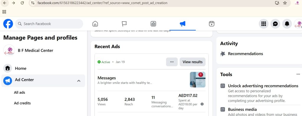 BF Medical Center is a leading multi-specialty healthcare clinic located in Al Ain, UAE, offering services in dentistry, dermatology, general medicine, and wellness care. Through tailored digital marketing for clinic growth, the center highlights its commitment to providing high-quality, affordable treatments with personalized care and modern equipment.