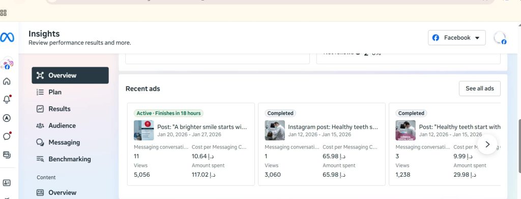 • Ran local Facebook and Instagram ad campaigns targeting patients in Al Ain